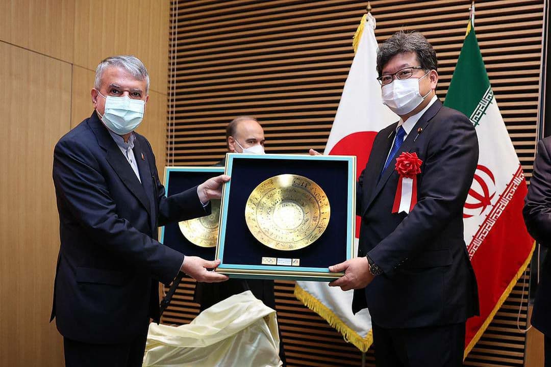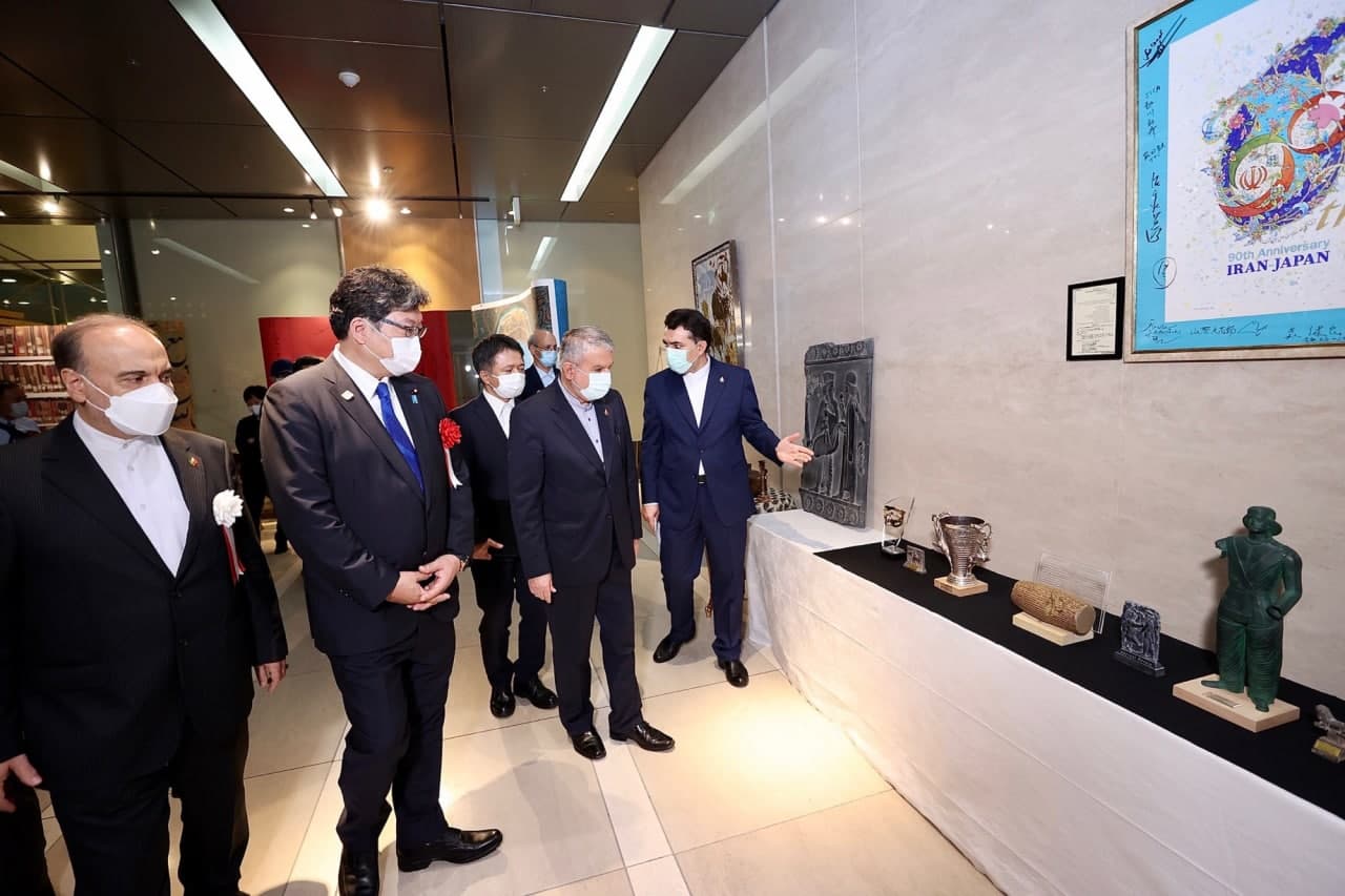 روز دوشنبه مورخ 4/4/1400 نمایشگاه ایران زیبا به منظور معرفی هنر، فرهنگ و تمدن ایرانی، با حضور رحمانی موحد سفیر محترم کشورمان ، دکتر سلطانی فر وزیر محترم ورزش و جوانان، دکتر صالحی امیری رئیس محترم کمیته ملی المپیک، جناب آقایهاگی اودا وزیر آموزش، فرهنگ، ورزش، علوم و فناوری ژاپن، جناب آقای تاکاهاشی دستیار وزیر و مدیر کل خاورمیانه وزارت امور خارجه ژاپن، جناب آقای تاکهیی شهردار میناتوکو، جناب آقای ساساکاوا رئیس بنیاد ژاپن،جناب آقای یاماگیوا دبیر گروه دوستی پارلمانی ژاپن- ایران، جمعی از دیپلماتها و ایرانیان مقیم، در محل سفارت جمهوری اسلامی ایران افتتاح شد.