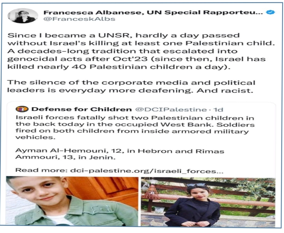 توئیت خانم فرانچسکا آلبانزه در مورد قتل کودکان غزه