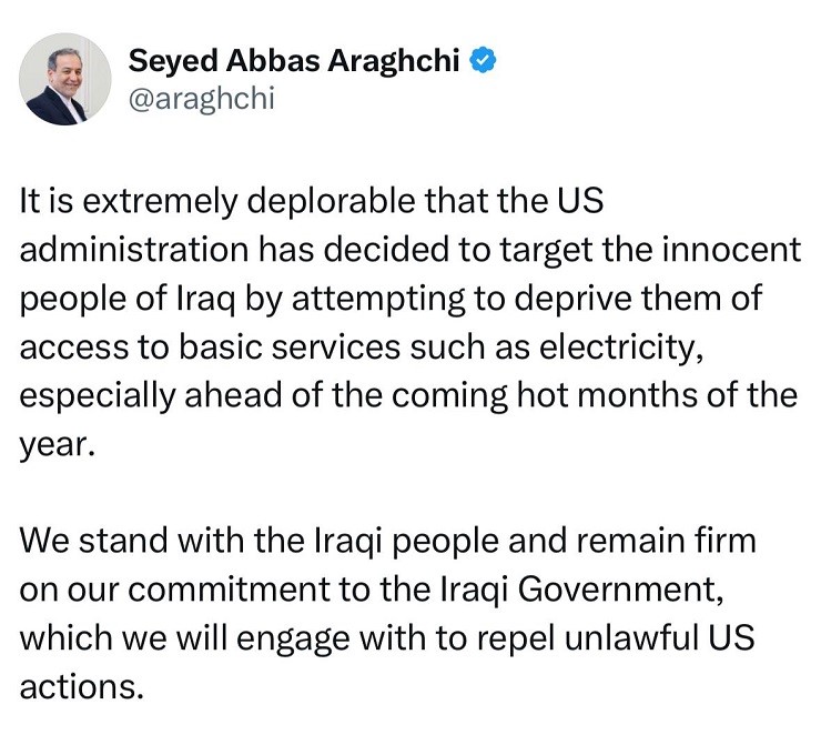 پیام سید عباس عراقچی وزیر امور خارجه در شبکه ایکس
